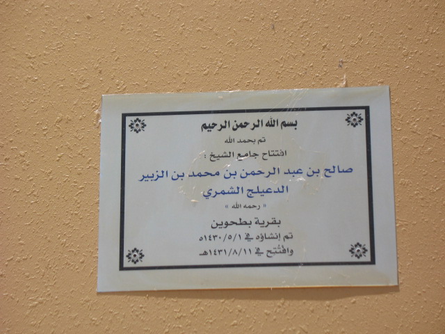 بفضل الله ومنته تم افتتاح جامع الشيخ صالح بن عبدالرحمن بن محمد بن الزبير الدعيلج الشمري (رحمه الله) في بطحوين بمنطقة حائل، وذلك في يوم الجمعة 11/8/1431هـ. وقد افْتَتَح المسجد نيابةً عن أبناء الشيخ صالح بن عبدالرحمن بن الزبير الدعيلج الشمري (رحمه الله) ؛فضيلة الشيخ عبدالعزيز بن صالح بن عبدالرحمن الدعيلج – إمام وخطيب جامع الرحمة بمحافظة الخبر في المنطقة الشرقية ،حيث ألقى فضيلته أول خطبة جمعة في الجامع ،وقد تكرم برعاية حفل الافتتاح الشيخ عبد الناصر بن سهو الزبير الشمري و فضيلة الشيخ عبدالمذري بن سهو الزبير الشمري إمام وخطيب جامع الشيخ صالح الدعيلج الشمري. كما حضر صلاة الجمعة جمع غفير من أهالي بطحوين وما حولها من القرى وعدد كبير من آل دعيلج من منطقة حائل ومنطقة الرياض والمنطقة الشرقية وباقي مناطق المملكة.وقد شرف الحفل المشرف على بناء الجامع أ. فدغوش بن مطير الزبير الشمري ورجل الأعمال أ. عبدالرحمن بن صامل الرويضي حيث تولت مؤسسة الرويضي للمقاولات بناء وتأثيث الجامع،وكان ممن شرف حفل الافتتاح الشيخ مطلق بن سالم الزبير الشمري و الدكتور هشال بن عبد العزيز الخريصي مدير هيئة التحقيق والادعاء العام بحائل، والشيخ محمد بن ركاد الويباري الشمري.